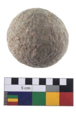 | Description / विवरण | A Hammer stone roughly rounded in shape with grounded edges. |