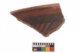 | Description / विवरण | Specimen of potsherd with black decorative geometric Linear painting, Type Black on Red Ware . |