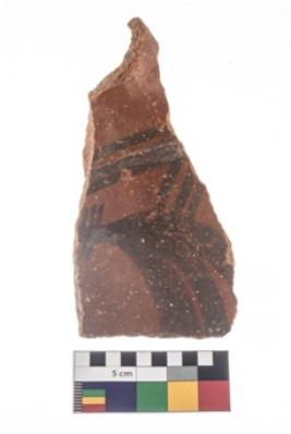 | Description / विवरण | Specimen of potsherd with black decorative geometric painting . |