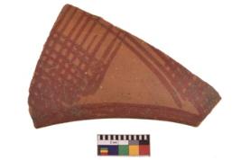 | Description / विवरण | Specimen of potsherd with decorative geometric painting. Type Red on Red Ware . |