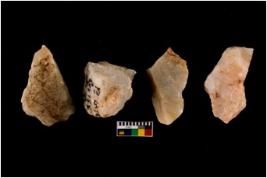 | Description / विवरण | Specimen of a cores with several broad fluted marks. The reverse bulb and platform can be seen. The flake scars are seen on all sides. |