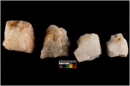 | Description / विवरण | Specimen of a cores with several broad fluted marks. The reverse bulb and platform can be seen. The flake scars are seen on all sides. |
