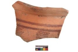 | Description / विवरण | Specimen of potsherd with decorative geometric painting. Type Red on Red Ware . |