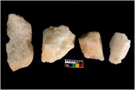 | Description / विवरण | Specimen of a cores with several broad fluted marks. The reverse bulb and platform can be seen. The flake scars are seen on all sides. |