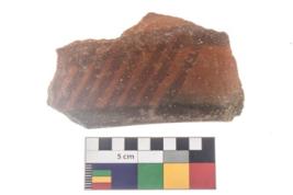 | Description / विवरण | Specimen of potsherd with black decorative linear painting |