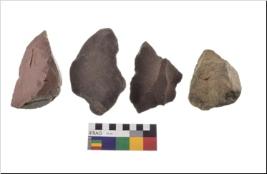 | Description / विवरण | There are n-4 of utilized flake cores. There are multidirectional irregular dominant scar pattern on both dorsal and ventral face of the cores. |