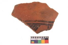 | Description / विवरण | Specimen of potsherd with black decorative geometric painting. |
