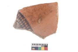 | Description / विवरण | Specimen of potsherd with black decorative geometric painting . |
