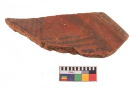 | Description / विवरण | Specimen of potsherd with black decorative geometric painting. |