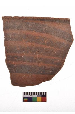 | Description / विवरण | Specimen of black on red ware with decorative geometric Its decorated with two horizontal bands with sets of triple arches painting. |