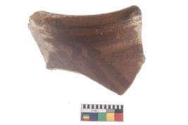 | Description / विवरण | Specimen of potsherd with black decorative linear painting . |