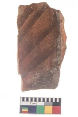 | Description / विवरण | Specimen of potsherd with black decorative linear painting . |