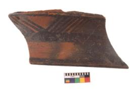 | Description / विवरण | Specimen of potsherd with black decorative geometric painting. |