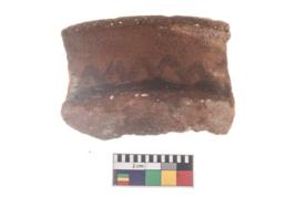 | Description / विवरण | Specimen of potsherd with black decorative linear painting . |