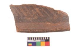 | Description / विवरण | Specimen of potsherd with black decorative linear painting . |