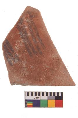 | Description / विवरण | Specimen of potsherd with black decorative geometric Linear painting, Type Black on Red Ware . |