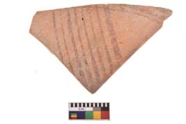 | Description / विवरण | Specimen of potsherd with decorative geometric painting on horizontal lines. Type Red on Red Ware . |