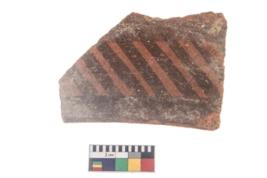 | Description / विवरण | Specimen of potsherd with black decorative linear painting . |