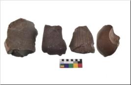 | Description / विवरण | There are n-4 of utilized flake cores. There are multidirectional irregular dominant scar pattern on both dorsal and ventral face of the cores. |
