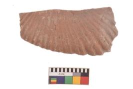 | Description / विवरण | A specimen is having rough surface with slanting lines engravings on it. It is reddish in colour. |