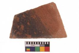 | Description / विवरण | Specimen of potsherd with black decorative geometric Diamond set broad horizontal bands painting, Type Black on Red Ware . |