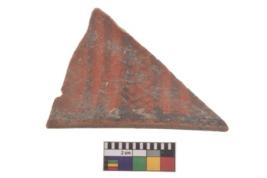 | Description / विवरण | Specimen of black on red ware with black decorative Parallel lines and lattice pattern geometric painting. |