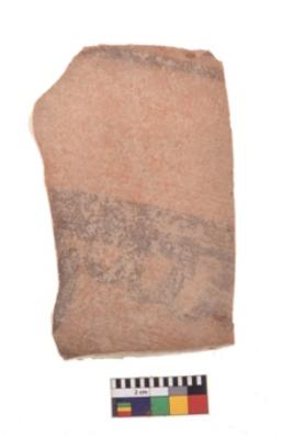 | Description / विवरण | A specimen of a potsherd. It is reddish in colour with black decorative geometric painting on it. |