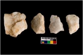 | Description / विवरण | Specimen of a cores with several broad fluted marks. Some of them are tapering at one end. |