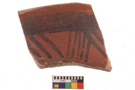 | Description / विवरण | Specimen of potsherd with black decorative geometric Linear painting, Type Black on Red Ware . |