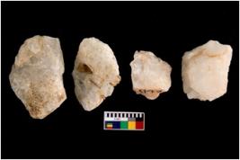| Description / विवरण | Specimen of a cores with several broad fluted marks. Some of them are tapering at one end. |