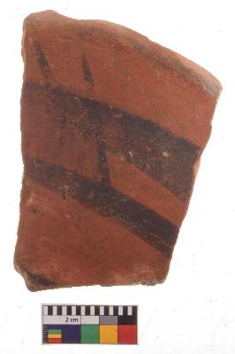 | Description / विवरण | Specimen of potsherd with black decorative painting, Type Black on Red Ware . |
