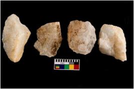 | Description / विवरण | Specimen of a cores with several broad fluted marks. Some of them are tapering at one end. |
