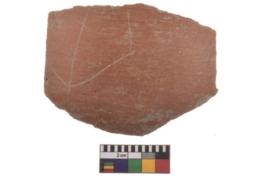 | Description / विवरण | Specimen of red ware with decorative Intersecting lines engraved geometric design. |