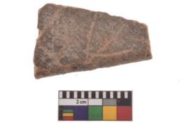 | Description / विवरण | Specimen of red ware with decorative Intersecting lines engraved geometric design. |