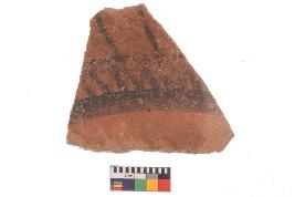 | Description / विवरण | Specimen of potsherd with black decorative geometric Set of two zigzag bands painting, Type Black on Red Ware . |