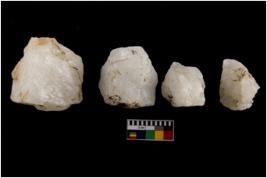 | Description / विवरण | Specimen of cores with weathered cortex and few broad fluted marks. They are irregular in shape. Some of them are tapering at one end. |