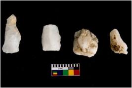 | Description / विवरण | Specimen of cores with weathered cortex and few broad fluted marks. They are irregular in shape. Some of them are tapering at one end. |