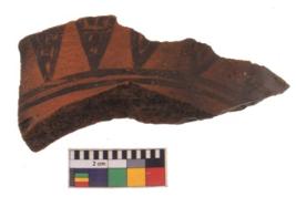 | Description / विवरण | Specimen of potsherd with black decorative geometric painting. |