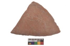 | Description / विवरण | Specimen of red ware with decorative Intersecting lines engraved geometric design. |