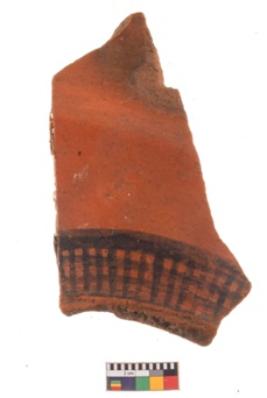 | Description / विवरण | Specimen of potsherd with black decorative geometric painting. |
