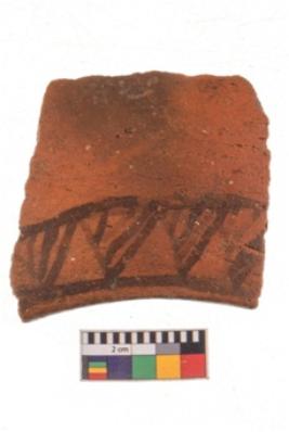 | Description / विवरण | Specimen of potsherd with black decorative geometric painting. |