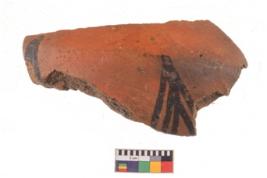 | Description / विवरण | Specimen of potsherd with black decorative geometric painting. |