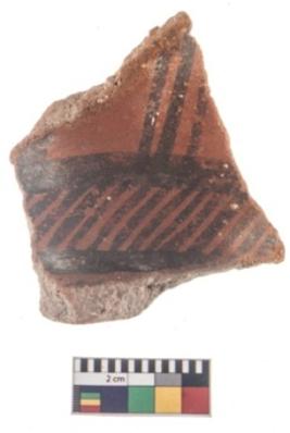 | Description / विवरण | Specimen of potsherd with black decorative geometric painting . |