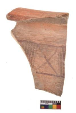 | Description / विवरण | Specimen of potsherd with decorative geometric painting. Type Red on Red Ware . |