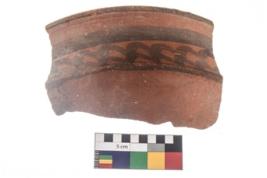 | Description / विवरण | Specimen of potsherd with black decorative geometric painting . |