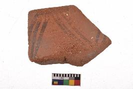 | Description / विवरण | Specimen of black on red ware with decorative geometric Two sets of three oblique bands in opposite direction painting. |