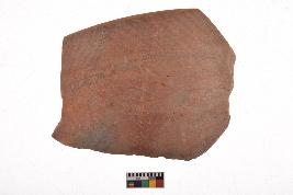 | Description / विवरण | Specimen of black on red ware with decorative geometric Groups of oblique strokes set in horizontal bands on the exterior painting. |