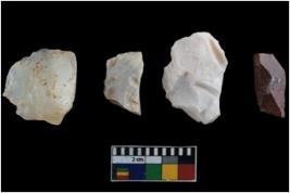 | Description / विवरण | There are four core; two of them are chalcedony and the remaining two are cherts. The chalcedony micro core has groves on its dorsal part. While there are couple of ridges as well. |