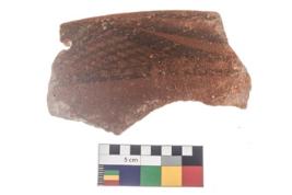 | Description / विवरण | Specimen of potsherd with black decorative geometric painting . |