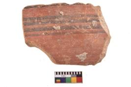 | Description / विवरण | Specimen of potsherd with decorative geometric painting. Type Black on Red Ware . |